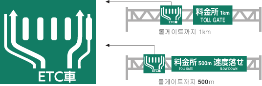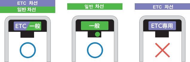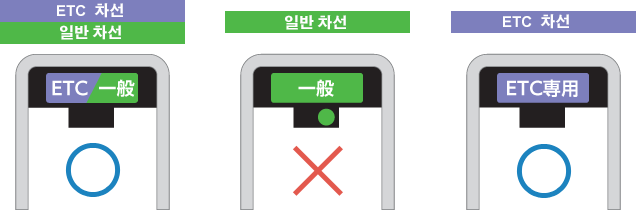 ③입구와 출구 톨게이트에서 ETC 표시가 된 차선 중 하나를 이용합니다.