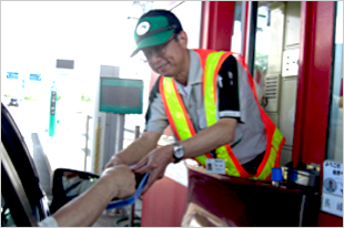 ③출구 톨게이트에서 톨게이트 패스를 안내원에게 주고 현금 또는 신용카드로 통행료를 지불합니다. 현금 결제는 일본엔으로 지불합니다.